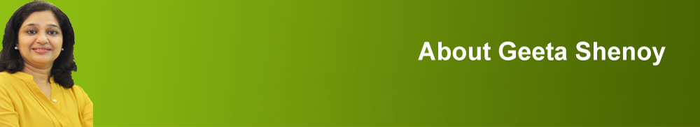 Geeta Shenoy has a rich and varied experience in the field of nutrition for over 25 years. Geetas integrative private practice offers clients with both dietary advice and scientific nutrition recommendations. Geeta operates a successful nutrition consulting practice in Chembur, Mumbai.